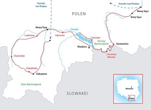 | 7. Tag | Szczawnica – Nowy Sącz | ca. 58 km |