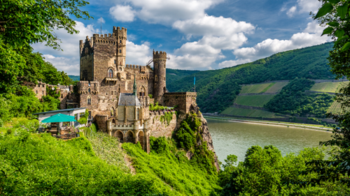 Das Mittelrheintal ist eine der schönsten und ältesten Kulturlandschaften Europas und gilt als Inbegriff der Rheinromantik. Aufgrund der großen Vielfalt und Schönheit des Mittelrheins gehört das Flusstal zwischen Koblenz und Bingen und Rüdesheim seit 2002 zum UNESCO-Welterbe. Das enge und zerklüftete Rheintal hat schon immer Maler, Dichter, Denker und Musiker inspiriert. Rund 40 Burgen, Schlösser und Festungen thronen hoch über beiden Ufern, malerische Dörfer und Städte reihen sich wie Perlen an einer Schnur entlang des Flusses, dazwischen rebenbewachsene Hänge. Sie sehen den Loreleyfelsen, wo der Sage nach die schöne Loreley mit ihrem langen blonden Haar die Rheinschiffer mit ihrem Gesang verzauberte und in den Untergang trieb. Stromaufwärts liegen Bingen und Rüdesheim, und die schöne alte Römerstadt Mainz ist die südlichste Stadt auf dieser Reise.