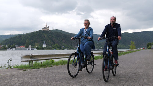 Ihre erste Radtour über den schönen Rheinradweg startet im kleinen St. Goar. Sie fahren heute durch den engsten, steilsten und vielleicht imposantesten Teil des Rheintals. Genießen Sie den Ausblick auf den hoch über den Fluss hinausragenden Loreleyfelsen auf dem Weg nach Oberwesel. Über Bacharach fahren Sie weiter nach Bingen. Auf einer kleinen Insel im Rhein an der Engstelle „Binger Loch“ sehen Sie den mittelalterlichen Mäuseturm. Zusammen mit der gegenüber gelegenen Burg Ehrenfels diente der rund 25 Meter hohe Turm früher als Wachturm und Zollwarte der Erhebung von Rheinzoll. In Bingen überqueren Sie den Fluss mit der Fähre zur Weinstadt Rüdesheim, Ihrem heutigen Etappenziel.
