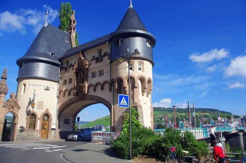 Während Sie frühstücken, fährt das Schiff über Cochem nach Beilstein. Ihre Radtour ab Beilstein führt Sie durch einen kurvenreichen Abschnitt des Moseltals, den Cochemer Krampen. Zwischen Weinbergen und durch kleine Dörfer radeln Sie ins malerische Traben-Trarbach. Der Stadtteil Traben liegt am relativ flachen Nordufer am Fuße der ehemaligen Festung Mont Royal, Trarbach ist langgestreckt am steilen Südufer der Mosel.
