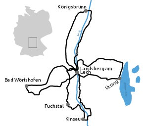 Der Ausflug führt von Landsberg am Lech über Penzing durch Felder zum Nordufer des Ammersees mit Alpenblick. Entlang der Westseite radeln Sie bis Utting - ideal für eine Pause am See und einen Sprung ins Wasser. Rückweg über Finning durch ruhige Landschaft zurück nach Landsberg. Abwechslungsreiche Tour mit Wasserblick, Natur und frischer Seeluft. Tipp: Badesachen mitnehmen - Strandbad Utting