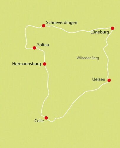 Durch den Naturpark Südheide geht es vorbei am Lönsstein in die Stadt Soltau mit dem sehenswerten Rathaus, dem norddeutschen Spielzeugmuseum oder zum bekannten Heide Park mit zahlreichen Shows und Attraktionen.