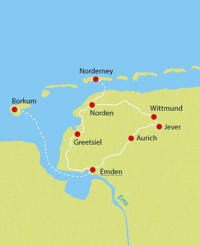 | 6. Tag | Jever Umgebung - Emden | 63 km |