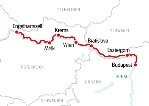 Mit Rad und Schiff entlang der Donau – ein ganz besonderes Erlebnis, denn Ihr „schwimmendes Hotel“ ist immer dabei! Das beeindruckende Naturschauspiel der Schlögener Donauschlinge, die faszinierende Landschaft der Wachau mit ihren Weinterrassen, die unberührten Auenwälder des Nationalparks Donauauen und das malerische ungarische Donauknie wechseln ab mit pulsierenden Metropolen wie Wien, Bratislava und Budapest. Der breite Strom zieht sich wie ein silberner Faden durch Budapest und teilt die Stadt in das bergige Buda und das flache Pest. Die Barockstadt Vác mit ihren bunten Häusern aus dem 18. Jh. wird Ihnen gefallen.