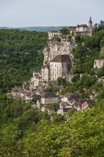 Auf einem ehemaligen Bahndamm radeln wir immer leicht bergab durch die typische Dordogne-Landschaft, geprägt von Nussbaumplantagen, Eichen- und Esskastanienwäldern. Die Bezeichnung Schwarzes Périgord verdankt die Region der schwarzen Erde ihrer Wälder. In Souillac stehen wir gegen Mittag in der romanischen Abteikirche vor zwei bedeutenden Kunstwerken des 12. Jahrhunderts: der Bestiensäule und dem Jesaja. Letzterer wird allgemein als Gipfel romanischer Plastik angesehen. Die Nachmittagsstrecke führt zunächst auf eine Karstebene und später in den Canyon der Ouysse. Dort besichtigen wir die Moulin de Cougnaguet, eine romantisch gelegene Mühle aus dem 13. Jahrhundert, die der ehemalige Müller in mühevoller Kleinarbeit restauriert hat. Bald darauf sind wir im bedeutenden Wallfahrtsort Rocamadour mit seinen sieben Kirchen, Kapellen und Krypten. Wir wohnen im komfortablen Hotel Beau Site***. Zum Dîner treffen wir uns im Hotelrestaurant, das uns mit regionalen Köstlichkeiten verwöhnt.