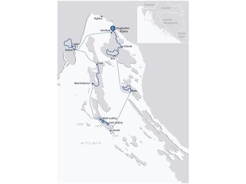 Geschützt von den mächtigen Bergen des Velebitgebirges im Osten und der istrischen Halb-insel im Nordwesten liegen die Inseln der Kvarner Bucht. Umgeben von kristallklarem Wasser finden sich einsame Buchten, grüne Hügel, schroffe Steinlandschaften und geschichtsträchtige kleine Hafenstädte. Mit einem romantischen Motorsegler und dem Fahrrad erleben Sie den Charme der Adria auf ganz besondere Weise.