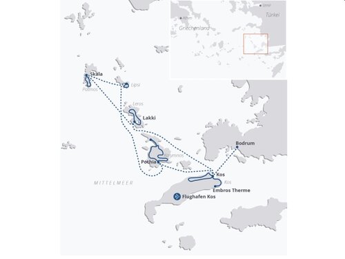 Mit einer komfortablen türkischen Gulet und per E-Bike erkunden Sie eine magische und mythische Welt, reich an Geschichtszeugnissen und Geschichten. Erleben Sie die griechische Ägäis aus einer ganz besonderen Perspektive, nämlich zu Wasser und zu Land. Erholen Sie sich in idyllischen Badebuchten, genießen Sie die herrlichen Ausblicke und wandeln Sie auf den Spuren einer bewegten und ruhmreichen Vergangenheit. Genießen Sie die Ruhe und Beschaulichkeit der liebenswerten Insel Lipsi, tauchen Sie ein in die Atmosphäre der heiligen Insel Patmos und bewundern Sie die einzigartigen Panoramen, die sich Ihnen auf Ihren Radtouren bieten.